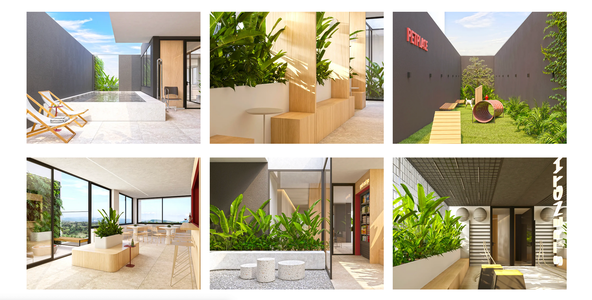 O projeto conta com vagas de garagem coberta, hall de entrada e áreas sociais de lazer com espaço multiuso, piscina, jardim de inverno, salão de festas e pet place.